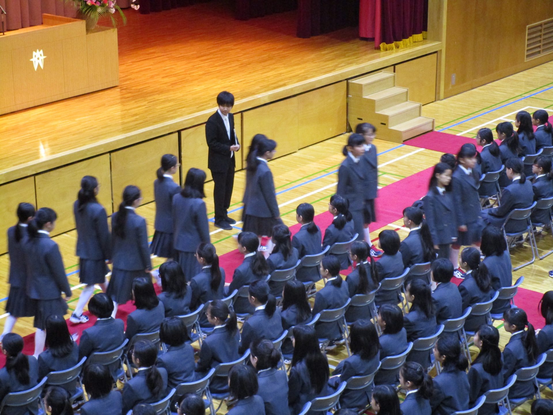 新しい制服に袖を通し、今日から始まる新生活に沢山の夢と希望、そして憧れを抱いています。勉強、クラブ活動、そして新しい友達と共に切磋琢磨し、充実した中学校生活を送りたいと願っています。その一方で不安を感じているのも確かです。授業についていけるのか、友達とうまくやっていけるのか、不安は尽きません。慣れない学校生活でいろいろな失敗をし、戸惑うことも、大きな壁が立ちはだかることもあるかと思います。そのような時には、仲間と助け合い、先生方や上級生の皆さまにお導きいただき、人間力を高める努力をして、真の道に進んでまいります。