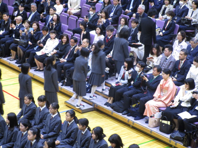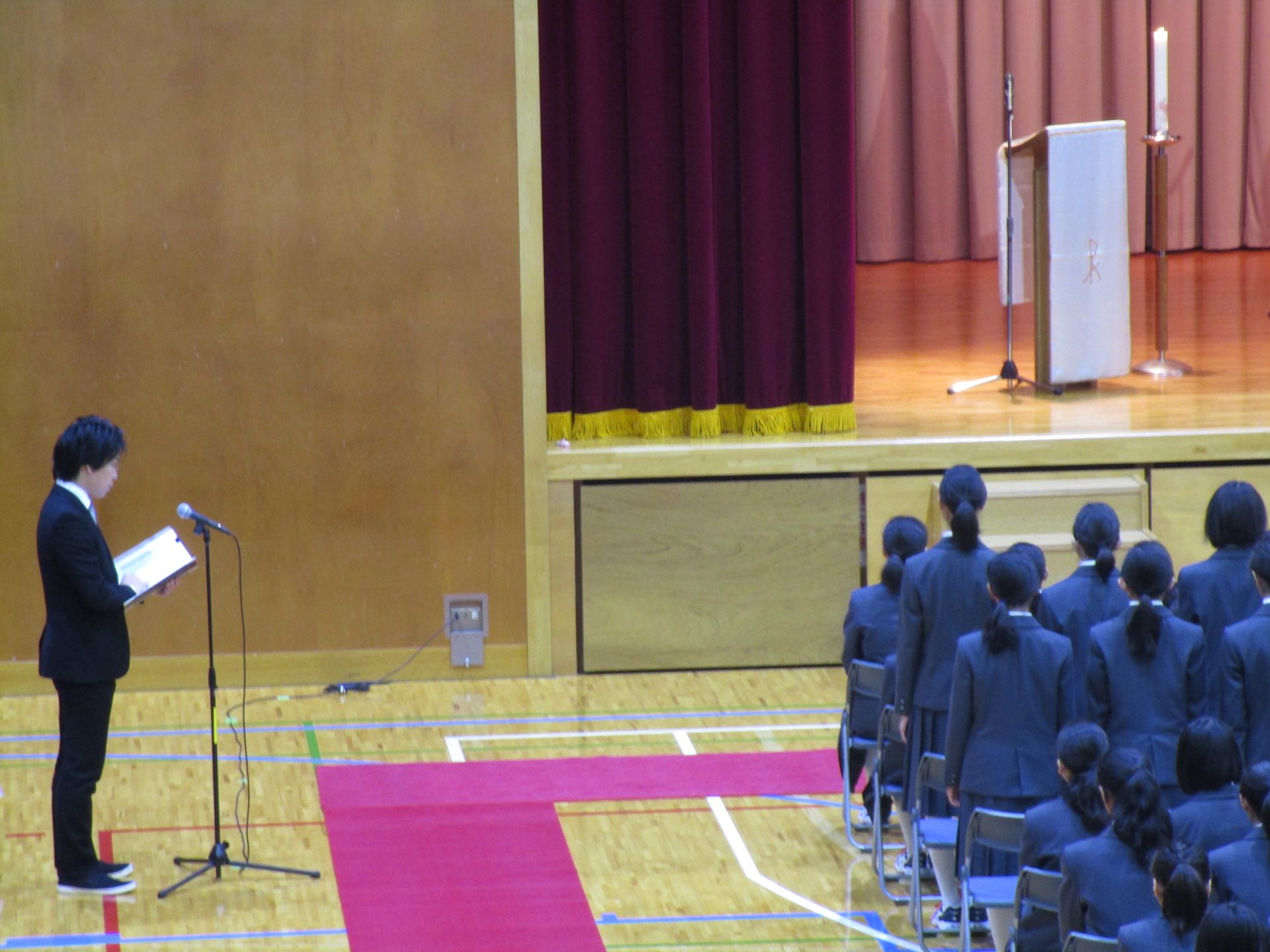 そして、この素晴らしい環境のもとで仲間と共に学べること、同時に、いつも私達を育み導てくださる方々や家族に心より深く感謝します。これから始まる中学校生活、常に一緒にいてくださるマリア様のご加護と神様のお導きのもと、正しい道を歩む人になれますようお祈りすると共に、自信をもって力強く歩むことをお約束して誓いの言葉といたします。