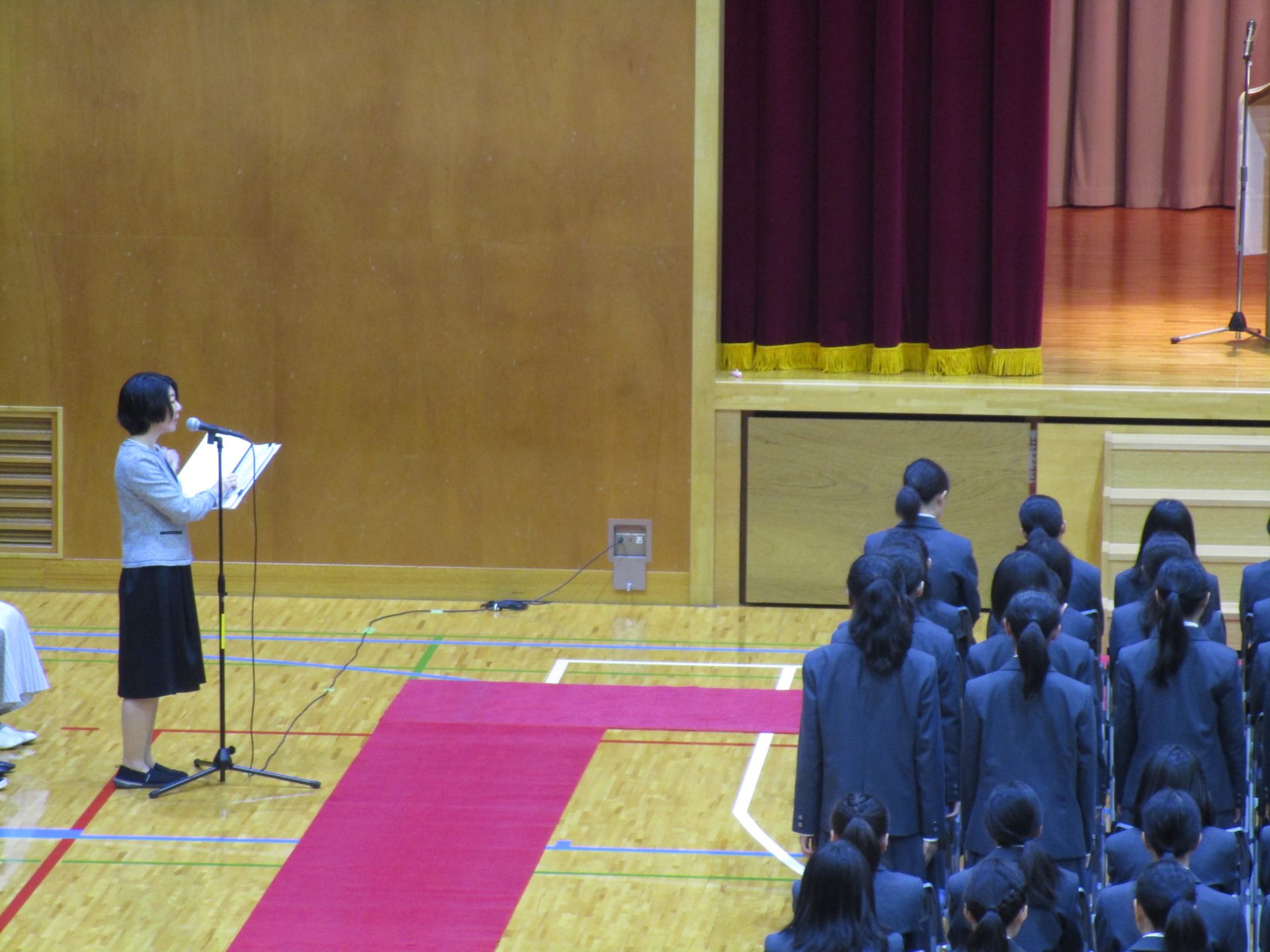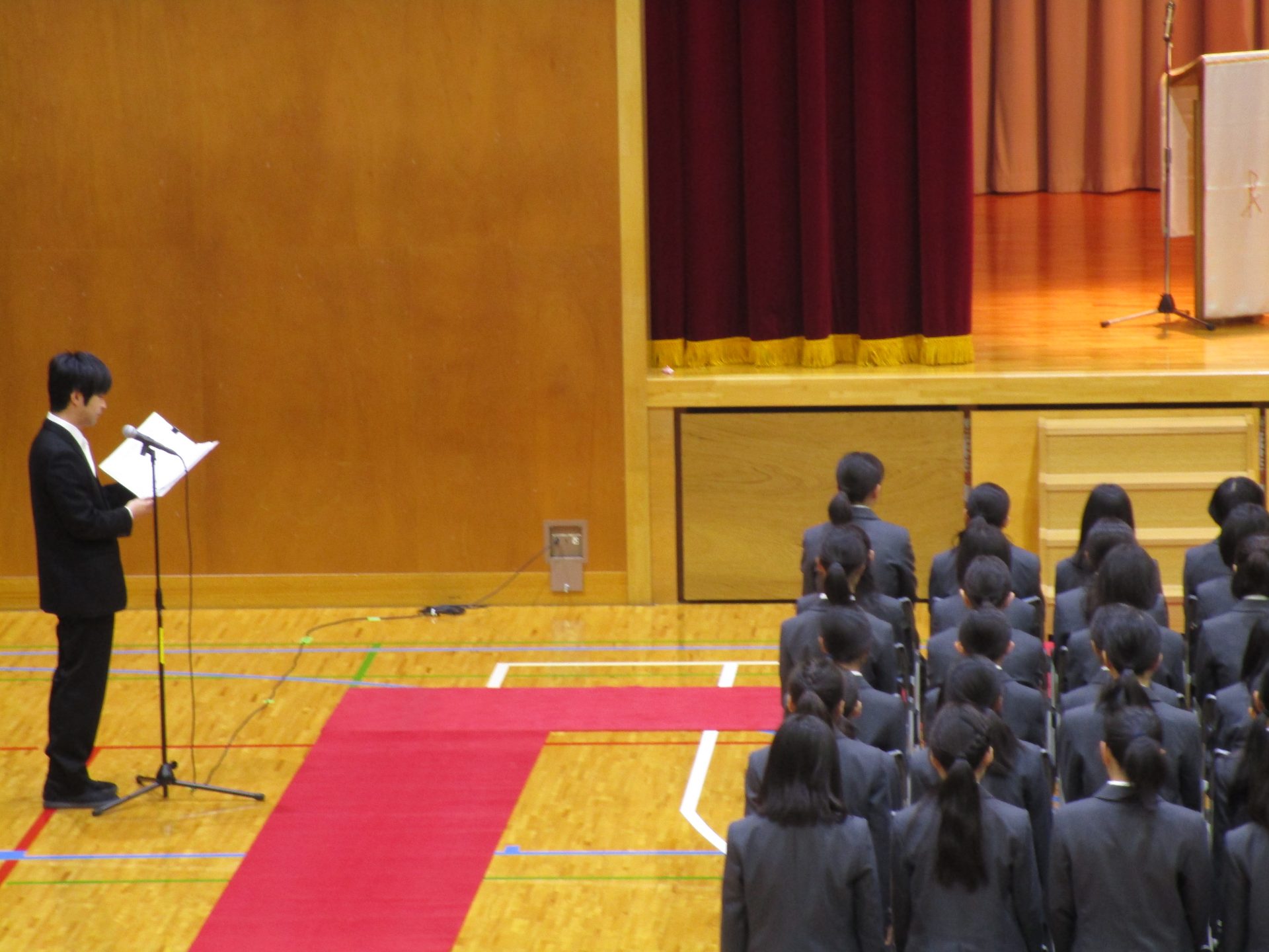 今、世界では日々のテクノロジーの発達により生活環境が大きく様変わりしています。インターネット等を繋げると世界的規模で自由に対話ができるようになっています。便利で豊かな生活である一方、膨大な情報にあふれて、その中から必要な知識を得るには、即座に取捨選択をする知恵が必要です。その知恵は経験を通じて得られるものと言われています。そのためには私達は沢山ことを経験し、そこから学ばなければなりません。人間力を磨かなければなりません。その多くの経験は、この学校生活で積み上げていくことができると思っています。その中で私たちは、お互いに顔を合わせて息遣いを感じ、手を取り合って温もりを感じ合うことこそが重要だと考えます。他者を認め、尊重するという気持ちを忘れることなく、日々の生活、行事やクラブ活動などで、上級者の皆様、そして友達ともコミュニケーションを取り、より良き人間になりたいと思います。