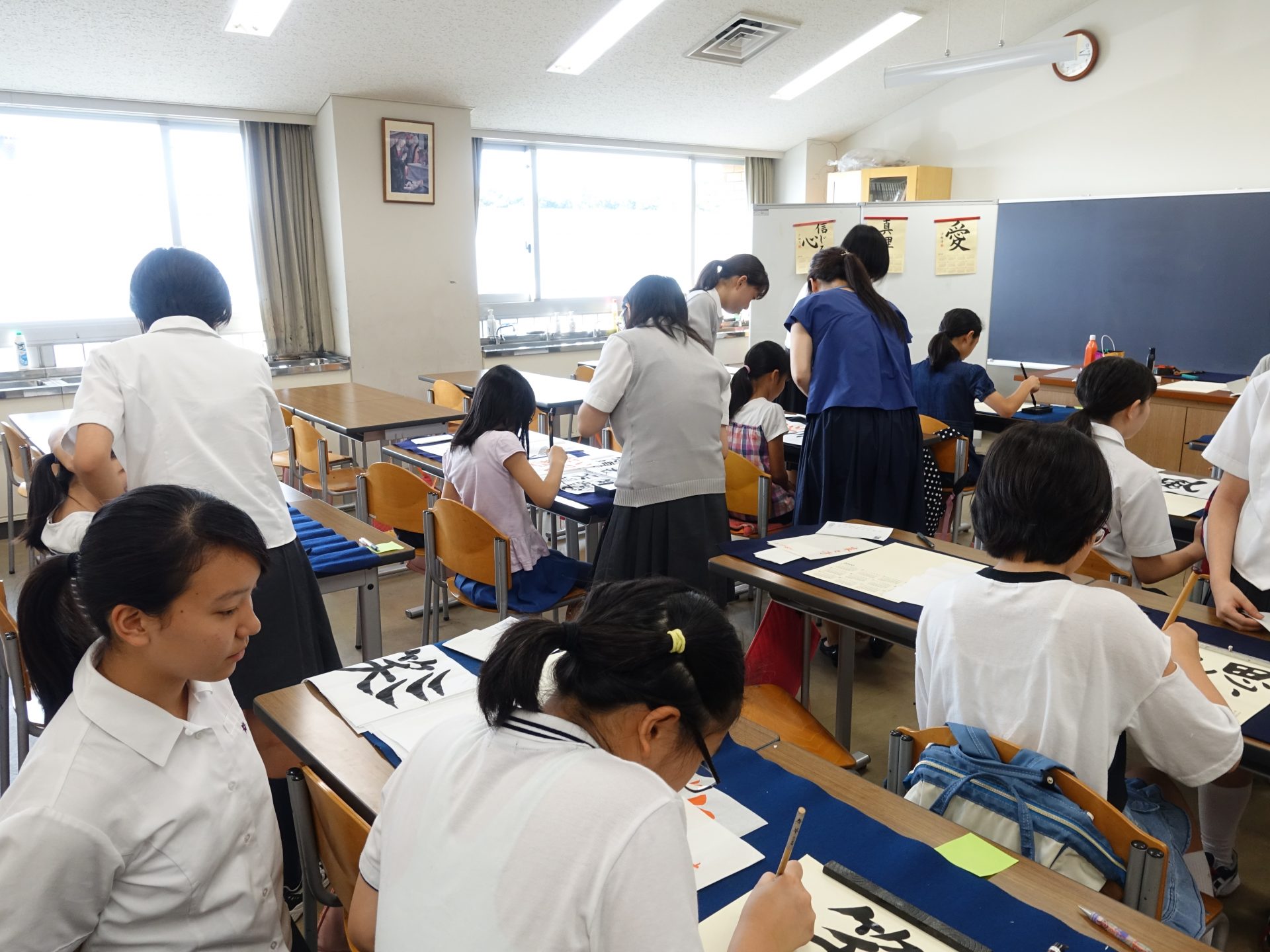わたしは、書道はそんなに得意ではないけれど、今日わたしをサポートしれくれていたお姉さんのおかげで字がうまくかけました。とてもうれしかったです!