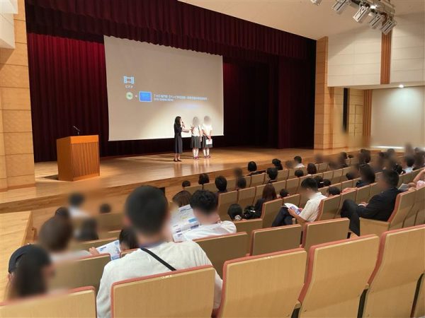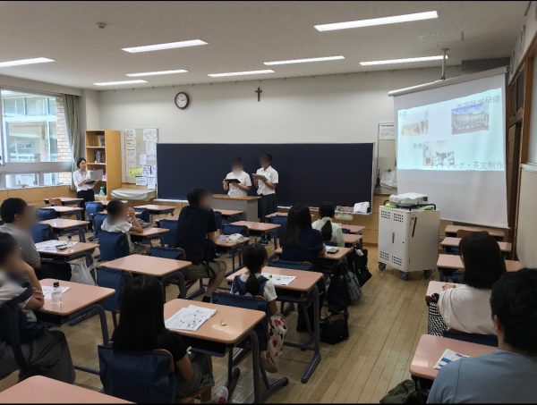 第1回ミニ説明会は立ち見が出る程のお客様!学校の理念やカリキュラムなどの概要を教員から説明しました。初めて晃華学園に来校したという方にとっても、晃華学園の概要が分かる説明会になったのではないでしょうか?また、ターム留学の経験のある生徒からの報告は好評だったようです。