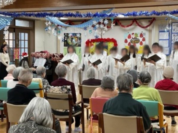 利用者の方々から「将来の夢は?」という質問が飛び出したり、学年ごとの歌もあり、それぞれのカラーが出て、参加した人皆が笑顔で交流することができました。アンコールは「ふるさと」を一緒に歌ったからか「昔を思い出した」と涙ぐむ方もいらして、あたたかい雰囲気のクリスマスコンサートになりました。皆様がお元気に、良いクリスマスを迎えられますように。