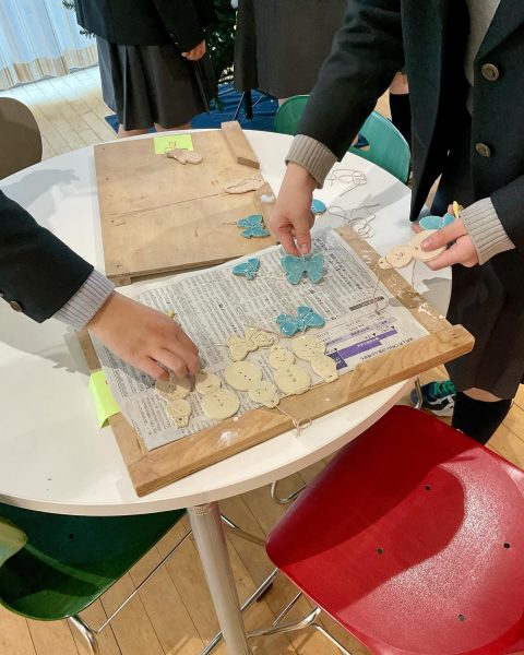 先日、完成したオーナメントを陶芸同好会の生徒がクリスマスツリーに飾りました!