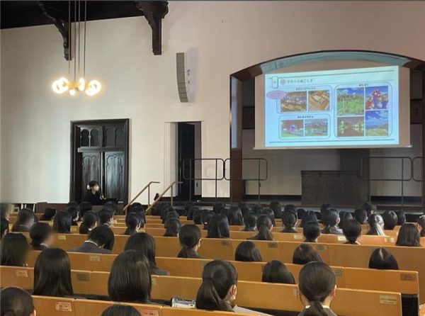 本校は、日本女子大学と高大連携協定を締結しています。この協定に関わる活動の一環として、中学3年生全員を対象に、日本女子大学の在学生による学部学科ガイダンス&キャンパスツアーが、目白キャンパスにて実施されました。
