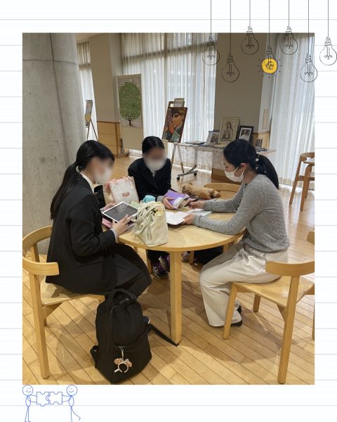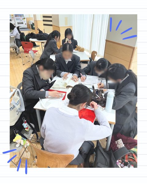 職員室前の質問コーナーでは、晃華生の質問に先生方が熱心に応える様子が見られます